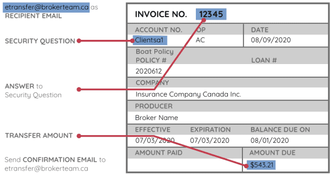 Please enter the following information as found on your BrokerTeam invoice/email with [email protected] as the recipient email.