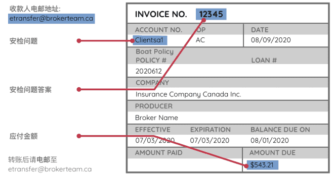 使用电子转账时,阁下可填写下述的资料以作识别;这些资料均可在联合保险给您的账单和电邮内查阅。收件人电邮地址:[email protected].
